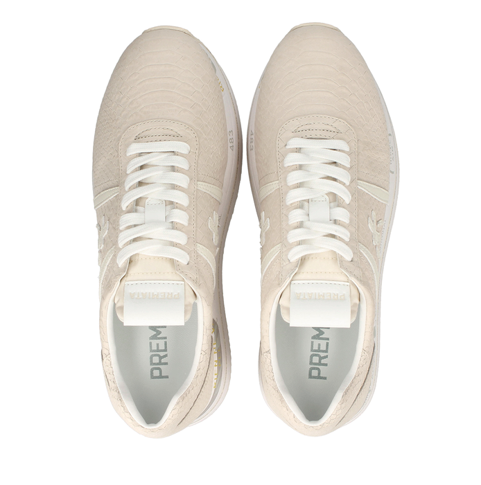 Viršus - specialiu būdu įspausta oda. Suvarstomi. Šviesiai rusvos spalvos.