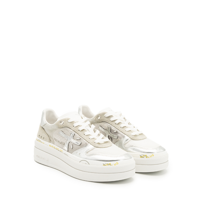Viršus - versta oda, tinklelinė tekstilė. Suvarstomi. Pilkos spalvos su metalinės sidabro spalvos odos detale.