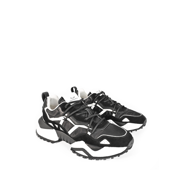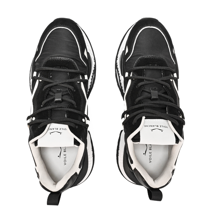 Viršus - oda, versta oda, techninis audinys. Suvarstomi. Juodos ir baltos spalvų.