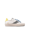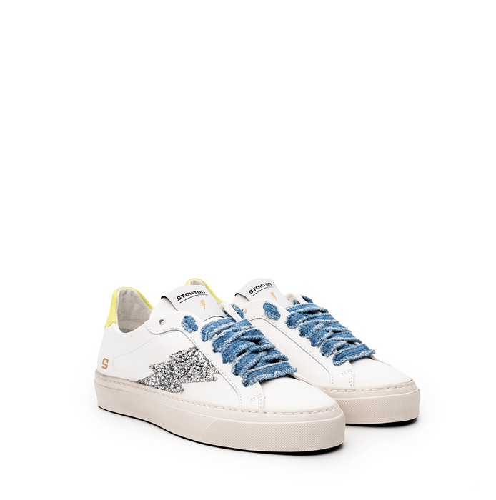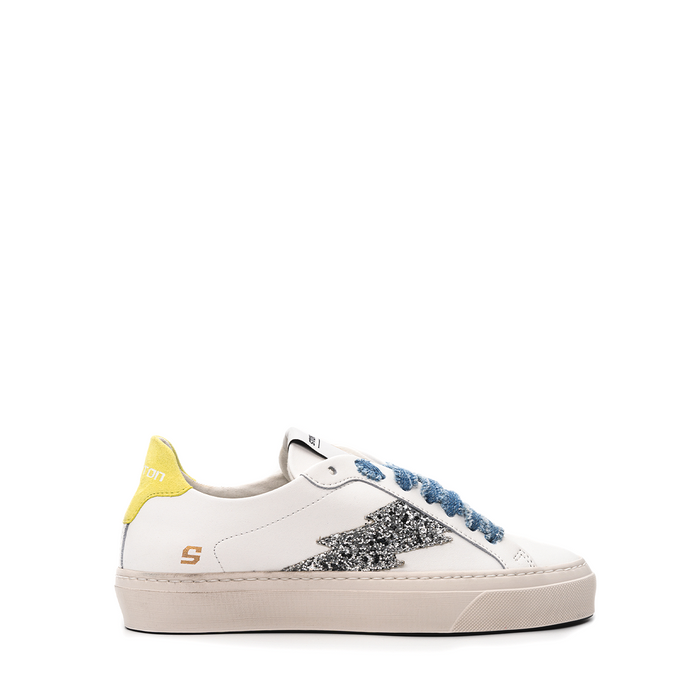 Viršus - oda. Suvarstomi. Baltos spalvos su salotinės spalvos detale.