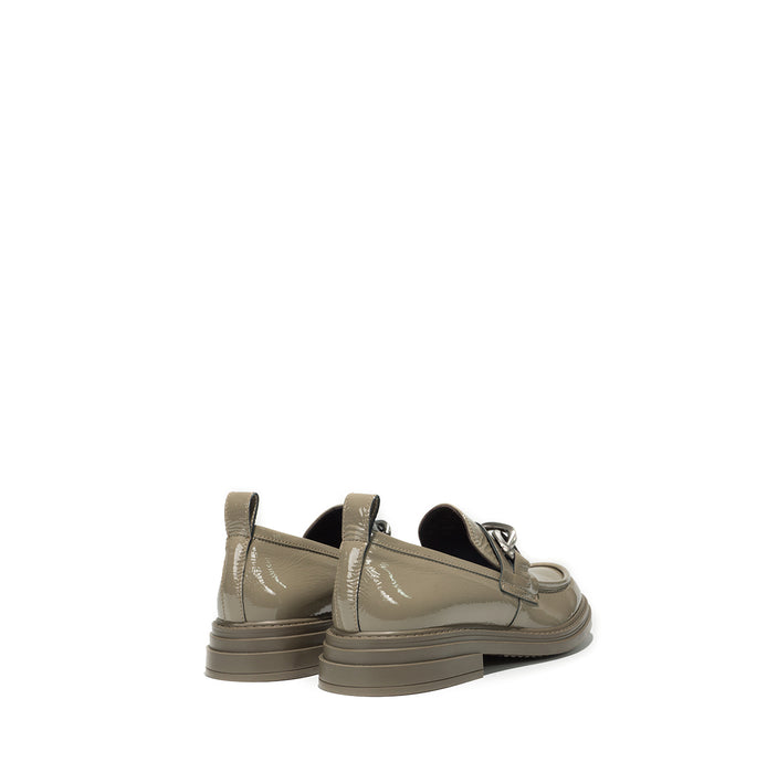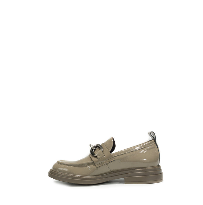 Viršus - lakuota oda. Įsiaunami. Šviesaus alyvuogių žalios atspalvio.