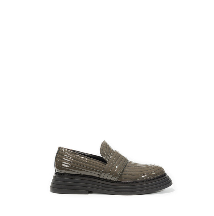 Viršus - lakuota oda. Įsiaunami. Tamsiai pilkos spalvos.