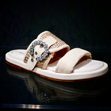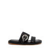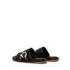Viršus - oda. Užsegimas sagtele. Pintos tekstilės detalė. Juodos spalvos.