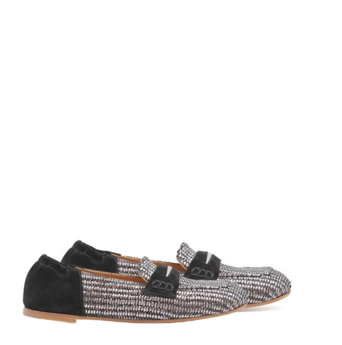 Viršus - pinta tekstilė, versta oda. Juodos spalvos su sidabro spalvos detalėmis.