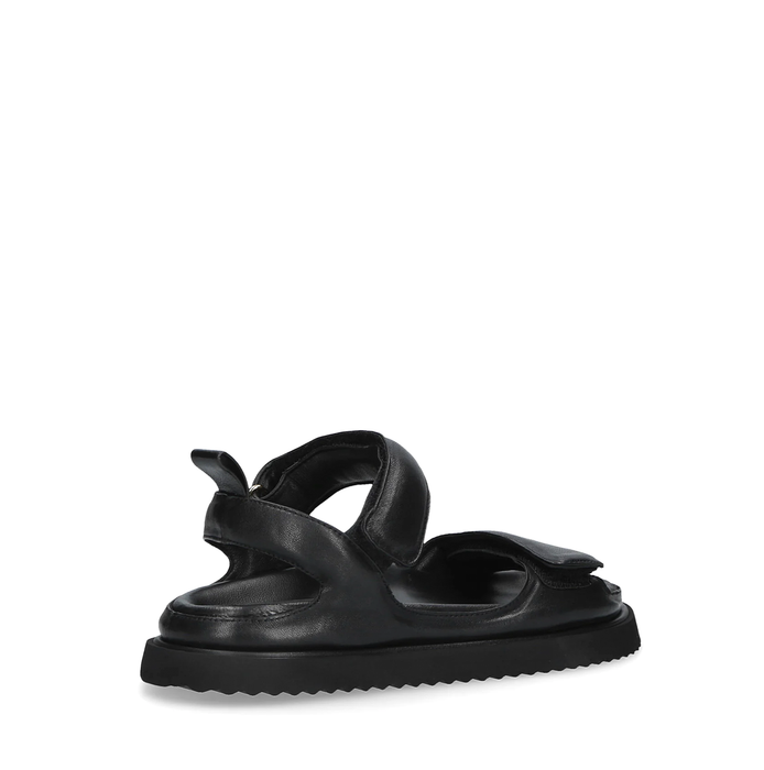 Viršus - minkšta oda. Įsiaunami. Užsegimas Velcro lipukais. Juodos spalvos.