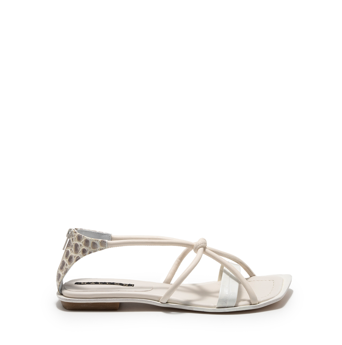 Viršus - oda. Įsiaunami, užsegimas užtrauktuku galinėje dalyje. Baltos spalvos.