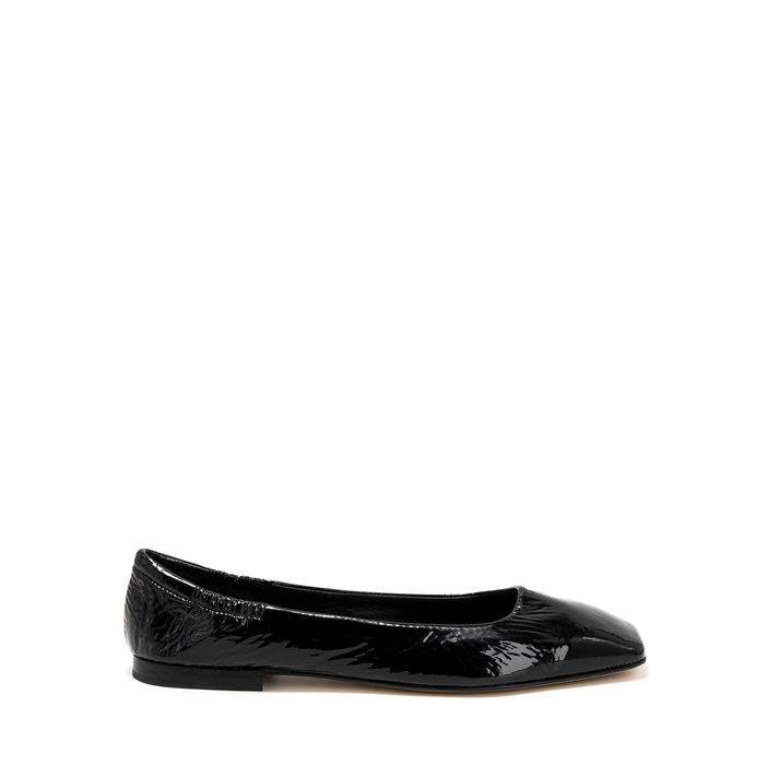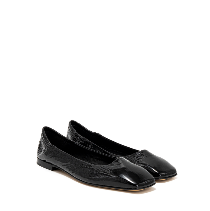 Extra soft patent leather loafers in black tone from Pomme D'Or. A round-curved toe, slip-on design. “Sacchetto” construction. "Sacchetto" creates light and ultra-flexible shoes that adapt to the movement and curvature of the feet. Leather lining, leather/rubber sole.