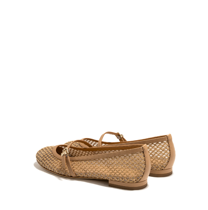 Woven and mesh textile loafers in light brown from Sergio Levantesi. A round-toe, slip-on design, buckle closure. Leather/textile lining, leather/rubber sole.