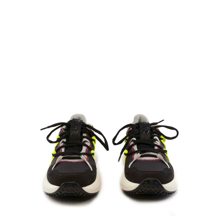 Leather and technical mesh textile sneakers from M2M by Vic Matie. A round toe, lace-up closure. Geometric form rubber sole. Textile lining.