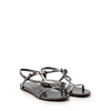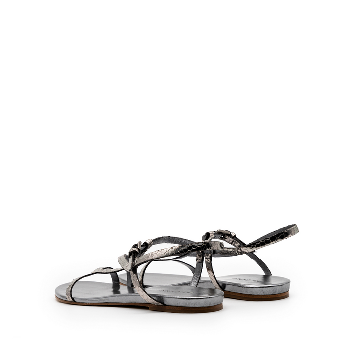 Embossed leather sandals in metallic tones from Del Carlo. A round open-toe, slip-on design with buckle closure. Leather lining, leather sole.