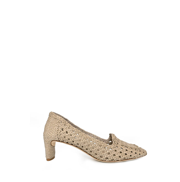Leather pumps with the special woven leather from Del Carlo. A round-toe, slip-on design. Leather lining, leather sole.