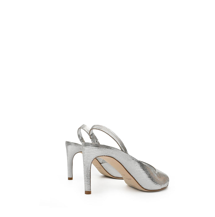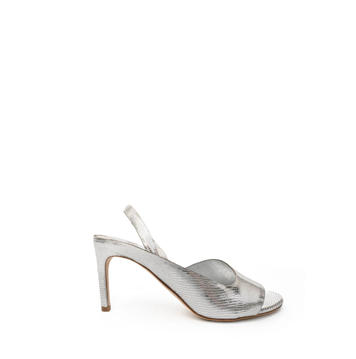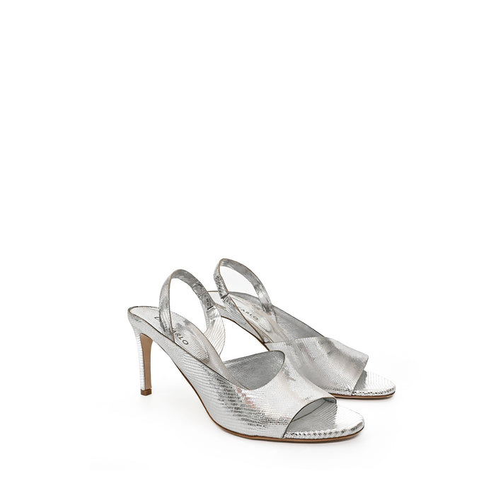 Embossed leather sandals from Del Carlo. A pointed-toe, slip-on design with elasticized rubber gussets. Leather lining, leather sole.