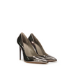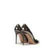 Embossed leather pumps in silver from Sergio Levantesi. A pointy toe, slip-on design. Stiletto heel. Leather lining, leather sole.