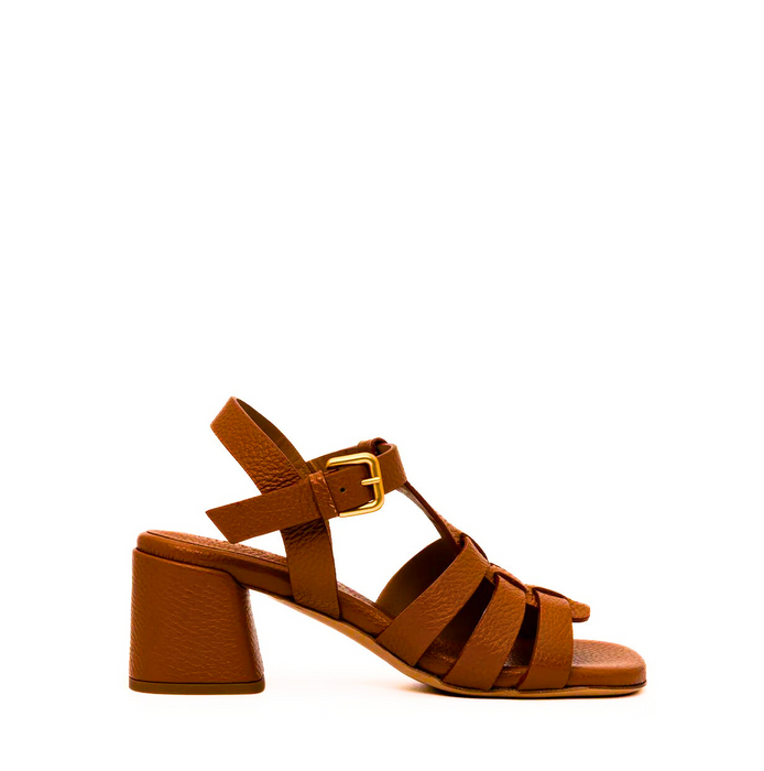 Soft-grained leather sandals in brown from Mara Bini. A round open toe, buckle closure. Leather lining. Leather/rubber sole.