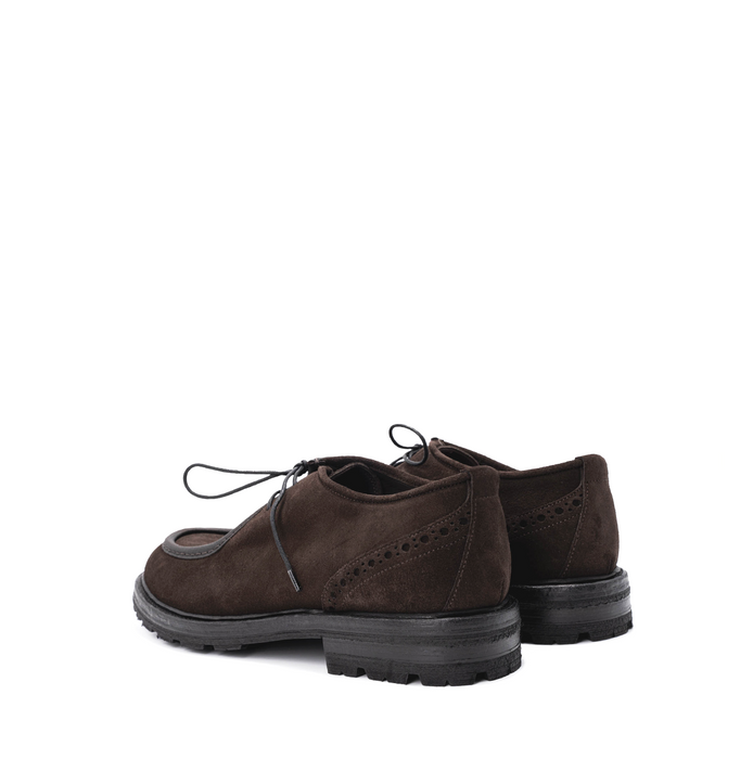 Suede lace-up shoes in brown from Pantanetti. A round toe, lace-up closure. These leather shoes are finished with a unique washing technique, making each pair different and exclusive. Leather lining. Rubber sole.