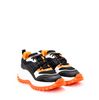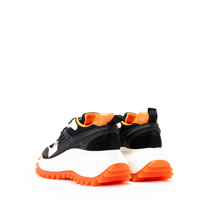 Running style sneakers in Nubuck, leather, and textiles in orange, black and white tones from Vic Matie. A round toe, lace-up closure. Logo-branded hyperbolized style lightweight one-piece sole with rubber insert and tread with maxi spikes. Pure cotton-covered anatomic insole.