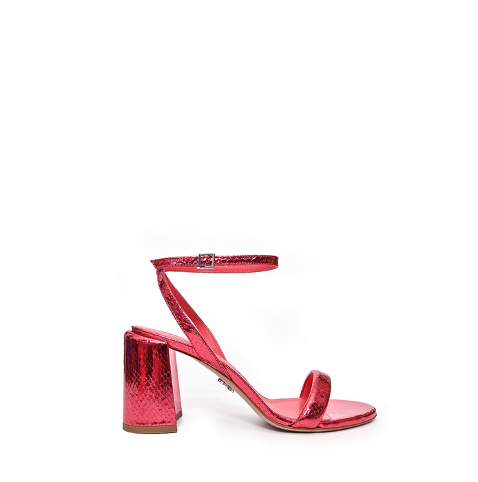 Embossed leather sandals from Sergio Levantesi. An open-toe, buckle closure. Geometric form heel. Leather lining, leather sole.