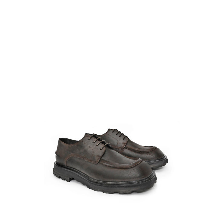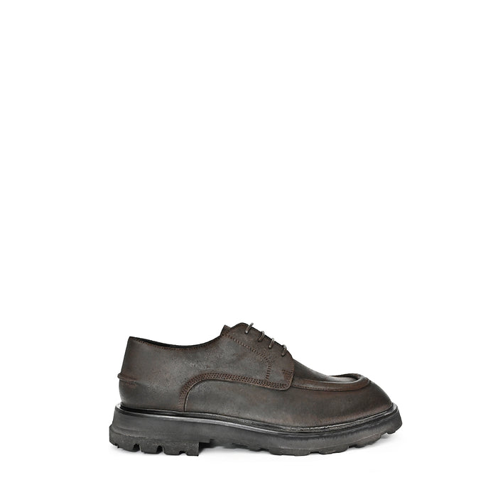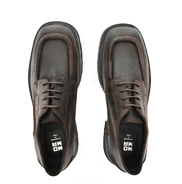 Waxed leather lace-up shoes from Moma. A curved toe, lace-up closure. Please note that these leather shoes are finished with a unique washing technique making each pair different and exclusive. Leather lining. Rubber sole.