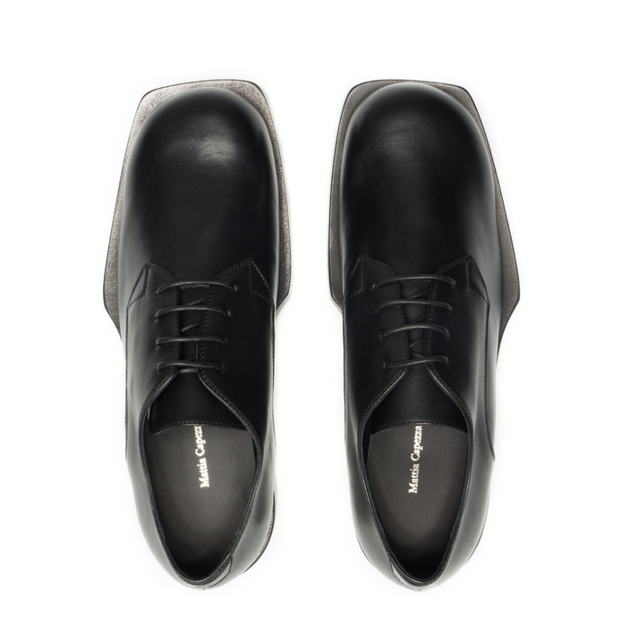 Leather lace-up shoes in black from Mattia Capezzani. A curved toe, lace-up closure. Leather lining. Leather sole with anti-slipper rubber injections. Handmade.
