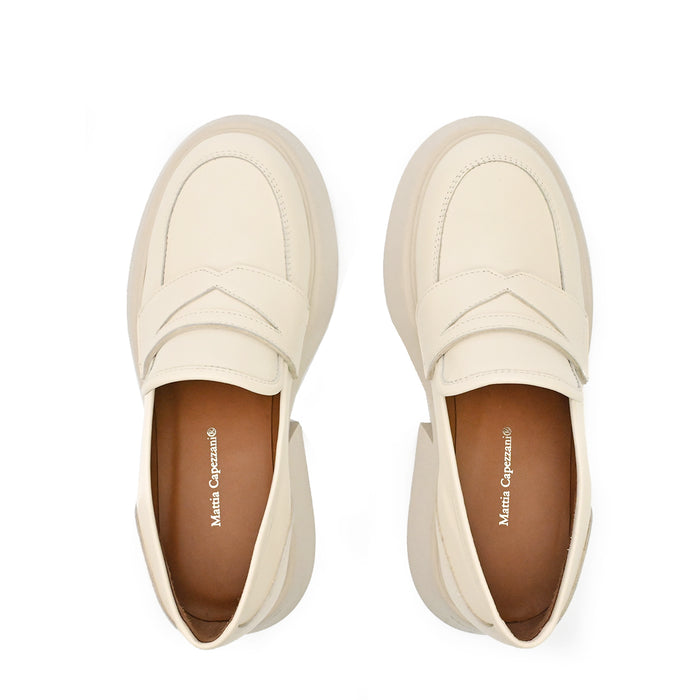 Leather loafers from Mattia Capezzani. A round toe, slip-on design. These shoes are finished with a special dyeing and washing technique, making each pair different and exclusive. Leather lining. Geometric form rubber sole.