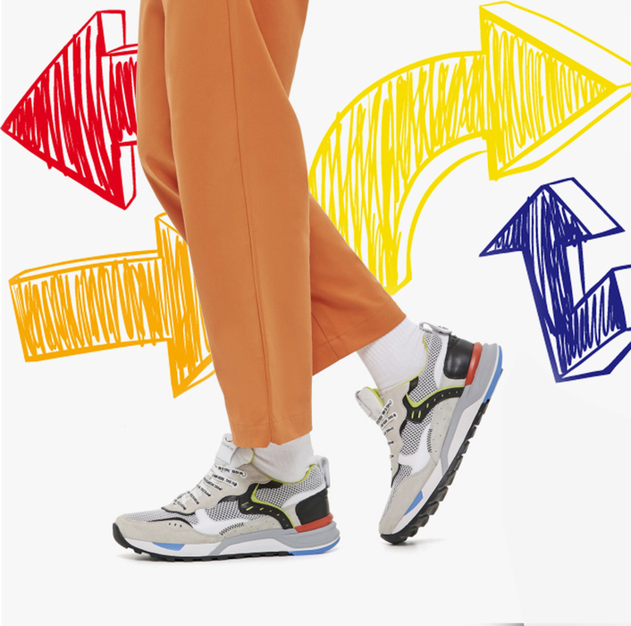 Leather and technical mesh textile sneakers from Voile Blanche. A round toe, lace-up closure. A mix of suede, technical mesh textile, and smooth leather. Leather lining.