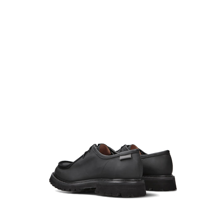 Gum leather lace-up shoes in black from Premiata. A round toe, lace-up closure. St. Moritz rubber midsole: resistant to corrosion by oils and hydrocarbons. Water-resistant and shock absorption in the heel area. The timeless style of St. Moritz soles integrates perfectly with the classic, sophisticated design of luxury footwear. Leather lining.
