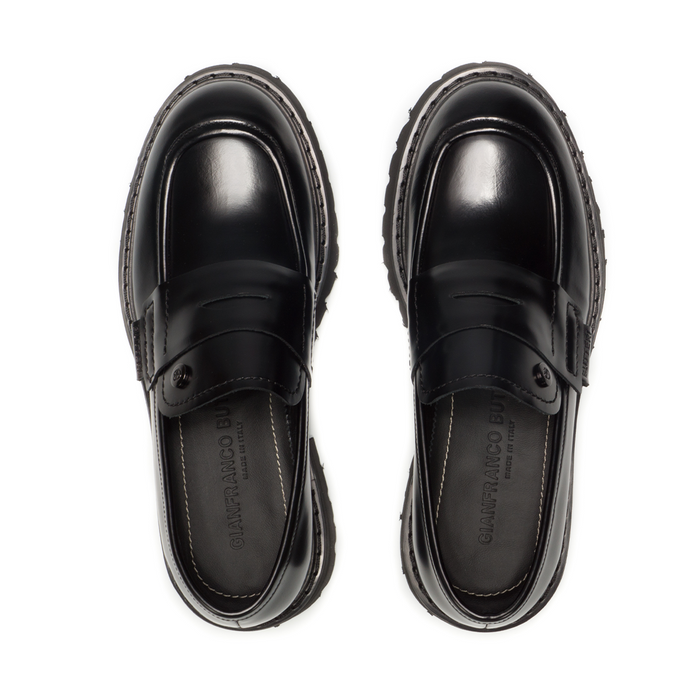 Polished leather loafers from Gianfranco Butteri. A round-toe, slip-on design. Leather lining. Rubber sole.