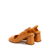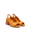 Leather sandals in caramel brown tone from Mara Bini. A round-toe, slip-on design, elasticized strap. Leather lining. Leather/rubber sole.