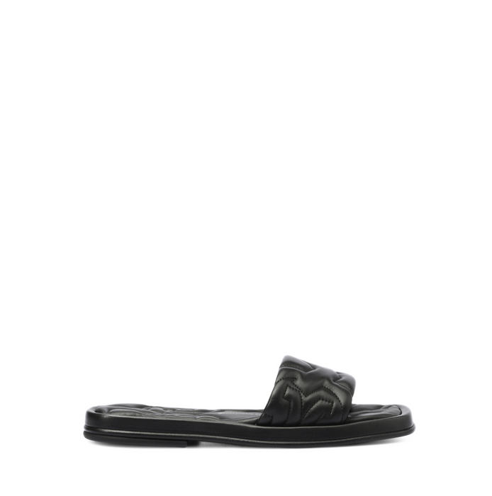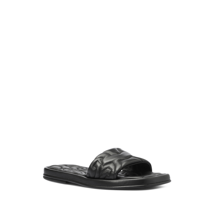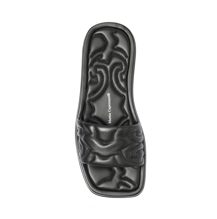 Leather sandals in black from Mattia Capezzani. A round-curved open toe, slip-on design. Memory insole with stitching. Leather lining. Leather/rubber sole.