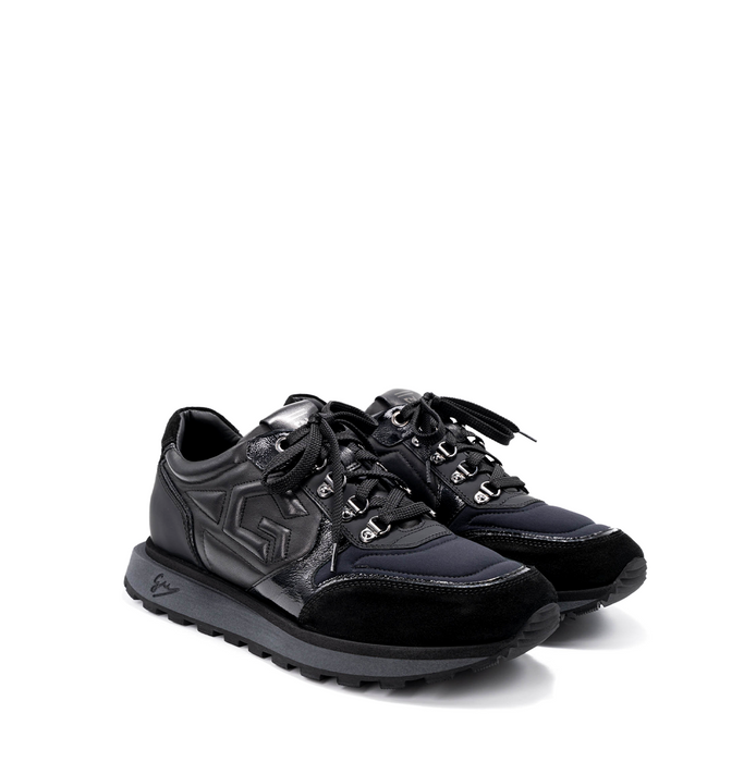 Suede and technical nylon sneakers in black from Giampieronicola. A round-toe, lace-up closure. Shiny leather inserts. Leather lining, rubber sole.