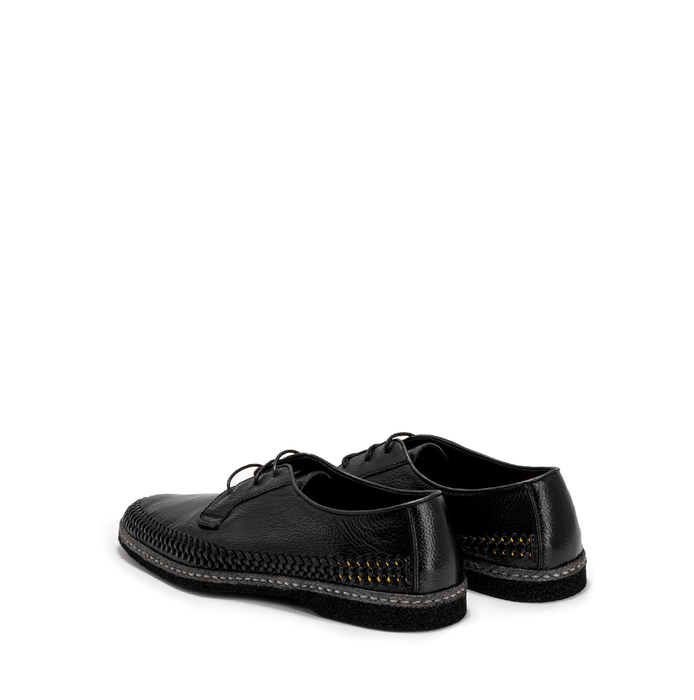 Embossed and woven leather lace-up shoes in black from Giampieronicola. A round toe, lace-up closure. Leather lining, rubber sole.