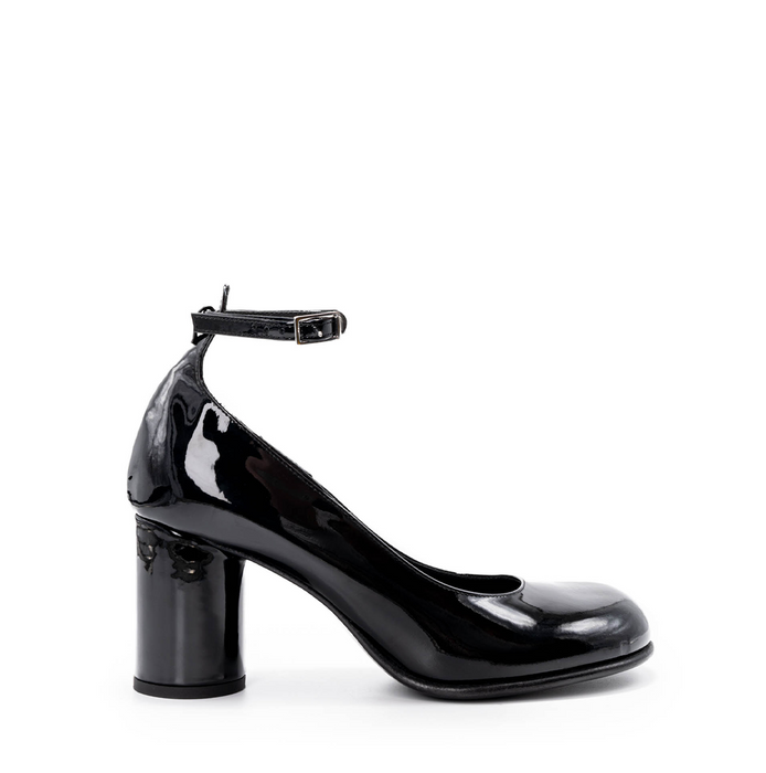 Patent leather pumps in black from Mattia Capezzani.Leather lining, leather/rubber sole. A round-toe, buckle closure.