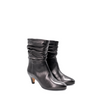 Soft leather ankle boots in black from Lorena Paggi. A pointy-toe, slip-on design. “Sacchetto” construction. "Sacchetto" creates light and ultra-flexible shoes that adapt to the movement and curvature of the feet. Leather lining and leather/rubber sole.