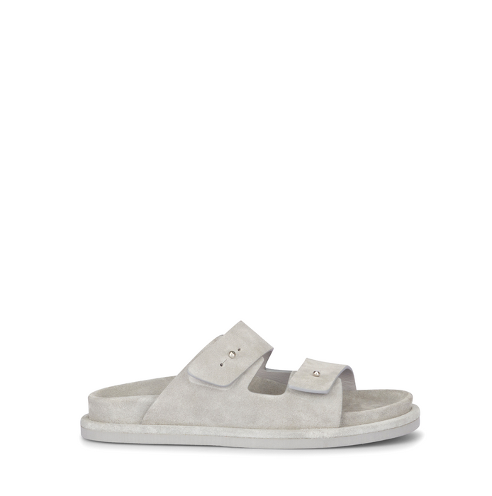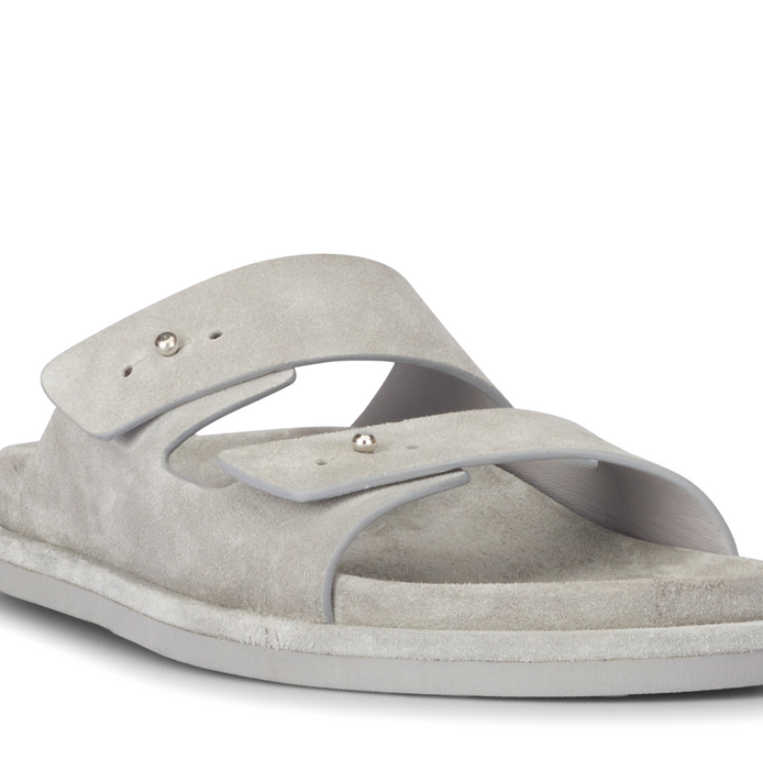 Suede sandals in grey tone from Mattia Capezzani. A round-toe, slip-on design. Leather lining. Rubber sole.