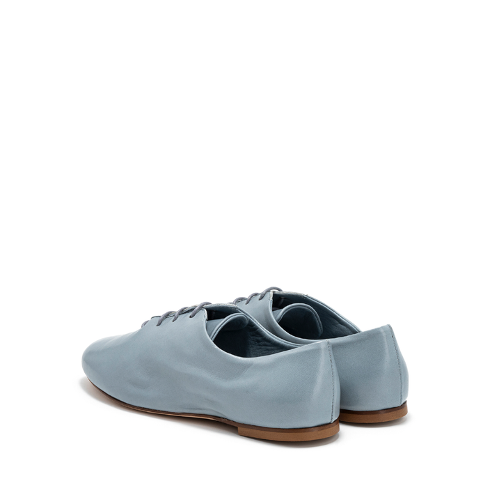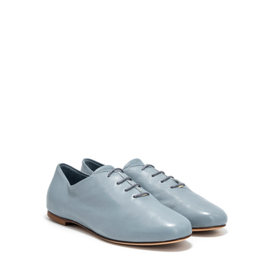 Extra soft leather lace-up shoes in blue tone from Lorena Paggi. A round-toe, lace-up closure. “Sacchetto” construction. "Sacchetto" creates light and ultra-flexible shoes that adapt to the movement and curvature of the feet. Leather lining, leather/rubber sole.