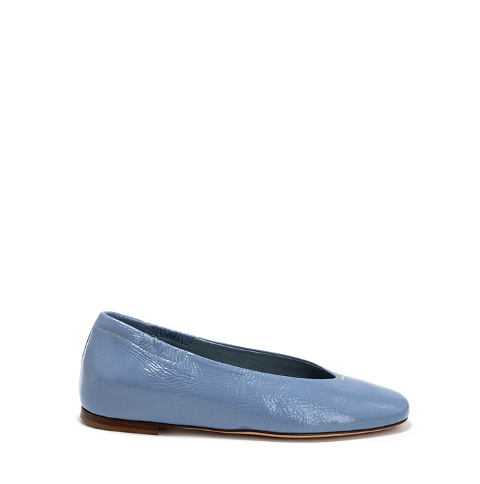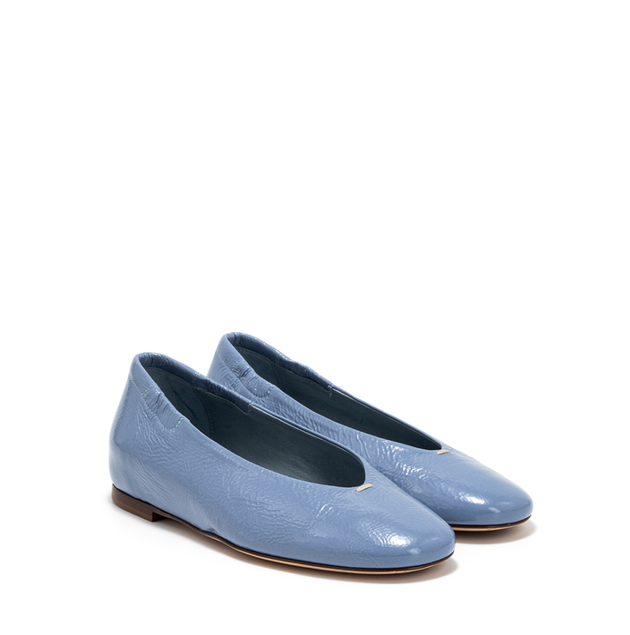 Glossy leather loafers in blue tone from Lorena Paggi. A round-toe, slip-on design. “Sacchetto” construction. "Sacchetto" creates light and ultra-flexible shoes that adapt to the movement and curvature of the feet. Leather lining, leather/rubber sole.