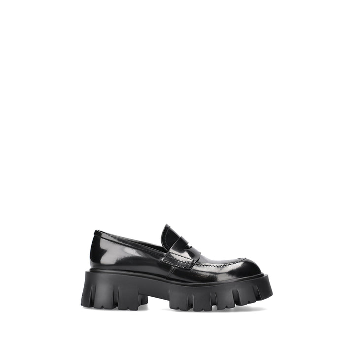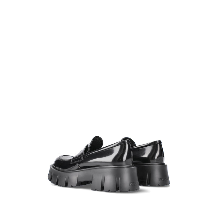 Lightweight polished leather loafers in black from Premiata. A round-toe, slip-on design. The mix of intense research and high-tech design with a classic and traditional method. Leather lining, rubber sole.