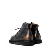 Leather ankle-high boots in black tone with brown details from Moma. A round toe, lace-up closure. These leather boots are finished with a unique washing technique, making each pair different and exclusive. Leather lining. Rubber sole.