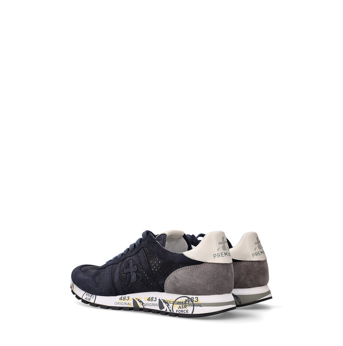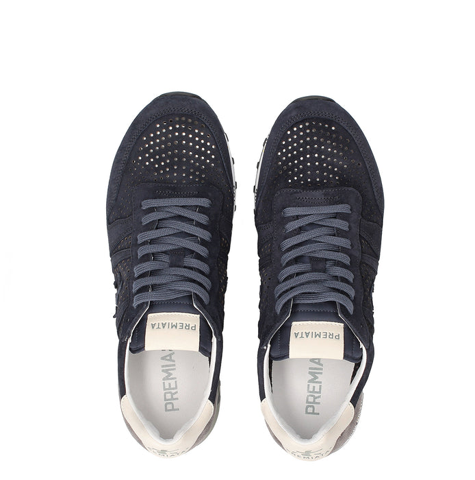 Perforated washed effect suede sneakers from Premiata. A round toe, lace-up closure. Dual-density rubber outsole. Patented design model.