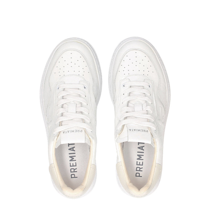 Leather sneakers from Premiata. A round toe, lace-up closure. Soft wrinkled patent leather. Dual-density rubber outsole. Patented model.