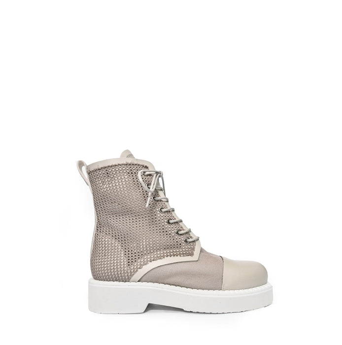 Leather and technical textile ankle-high boots from Premiata. A round toe, lace-up closure. Leather lining. The mix of intense research and high-tech design with the classic and traditional methods.