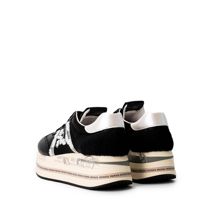 Leather and technical textile sneakers in black from Premiata. Embellished with the cotton-effect embroidered logo. A round sneakers toe, lace-up closure. Leather lining. Rubber sole. Logo print at the sole, patented design model.