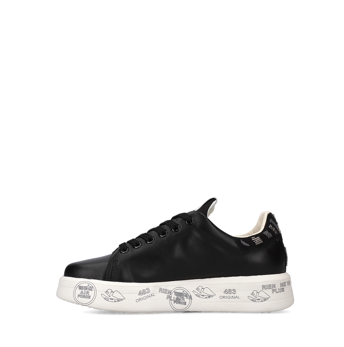 Leather sneakers in black from Premiata. A round toe, lace-up closure. Leather lining. Dual-density rubber outsole. Logo print at the front. Patented design model.