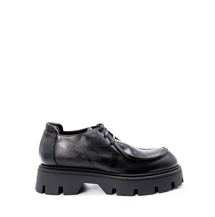 Black leather lace-up from Ernesto Dolani. A round-toe, lace-up closure. Leather lining, rubber sole.
