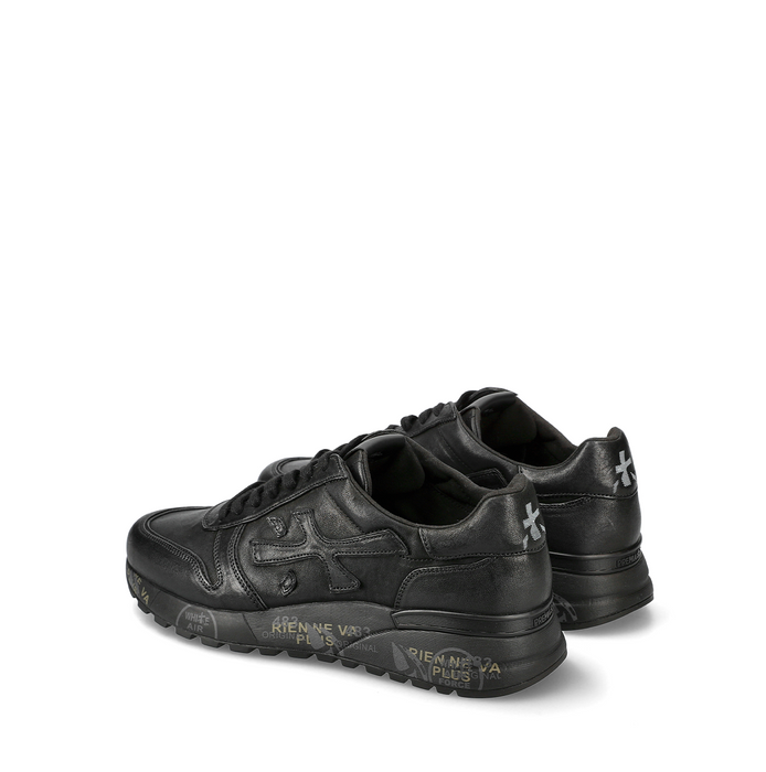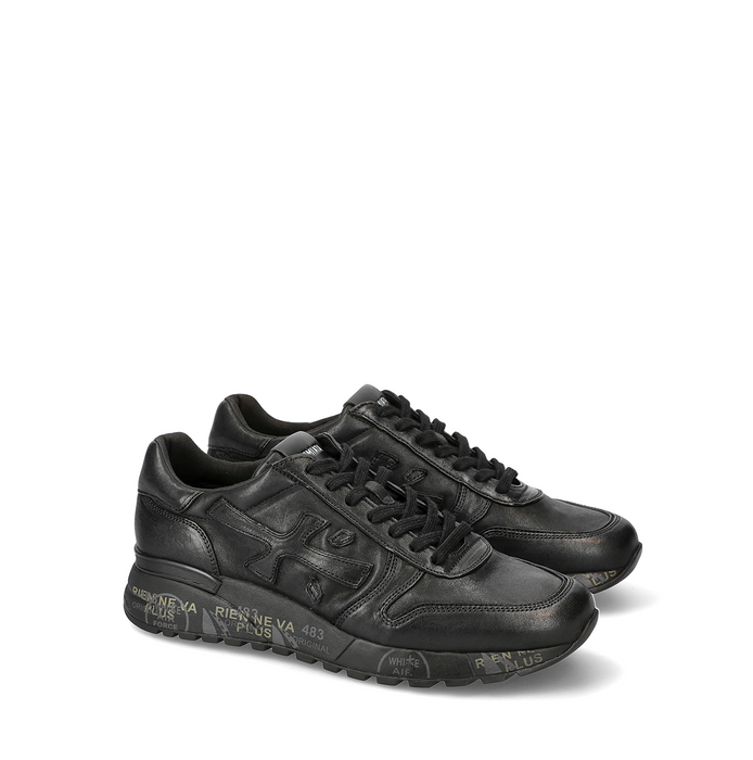 Leather sneakers in black from Premiata. A round toe, lace-up closure. Dual-density rubber outsole. Patented design model.