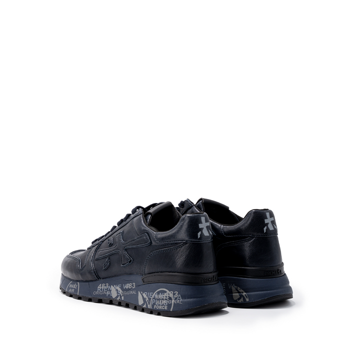 Washed leather sneakers in navy from Premiata. A round toe, lace-up closure. These sneakers are finished with a unique washing technique, making each pair unique and exclusive. PA, PU lining. Dual-density rubber outsole. Patented design model.