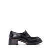 Leather loafers in black from Moma. A round-toe, slip-on design. These leather shoes are finished with a unique washing technique, making each pair different and exclusive. Leather lining, leather/rubber sole.