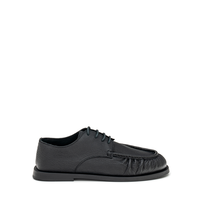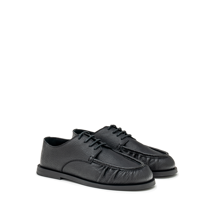Grained leather lace-up shoes from The Antipode. A round-toe, lace-up closure. Pleat detailing. Leather lining. Leather/rubber sole.