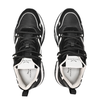 Leather sneakers in black and white from Voile Blanche. A round toe, lace-up closure. A mix of suede, leather and technical nylon. Cemented construction. Textile/leather lining.