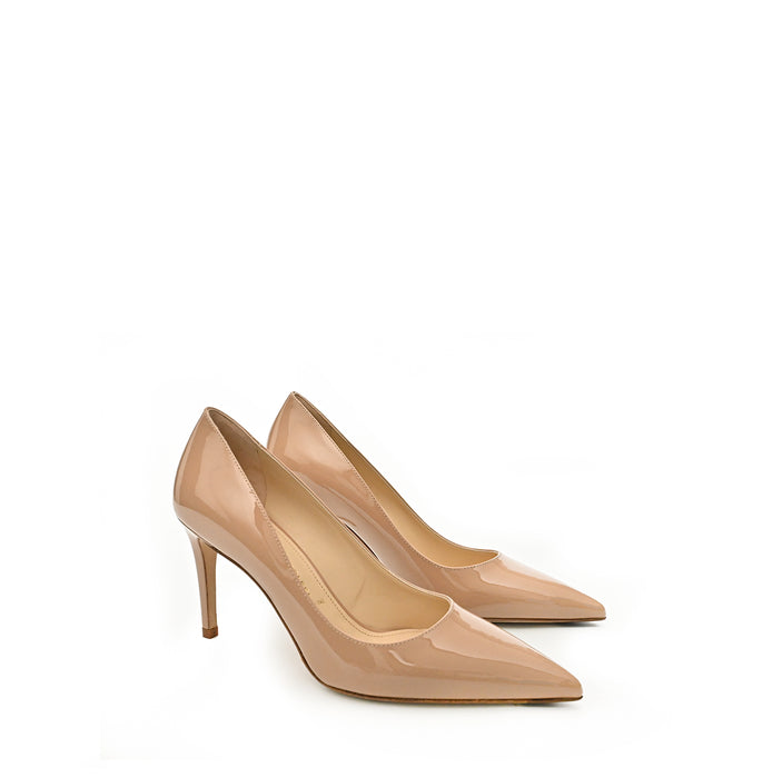 Patent leather pumps from Mascia Mandolesi. A pointy toe, stiletto heel. Leather lining, leather sole.